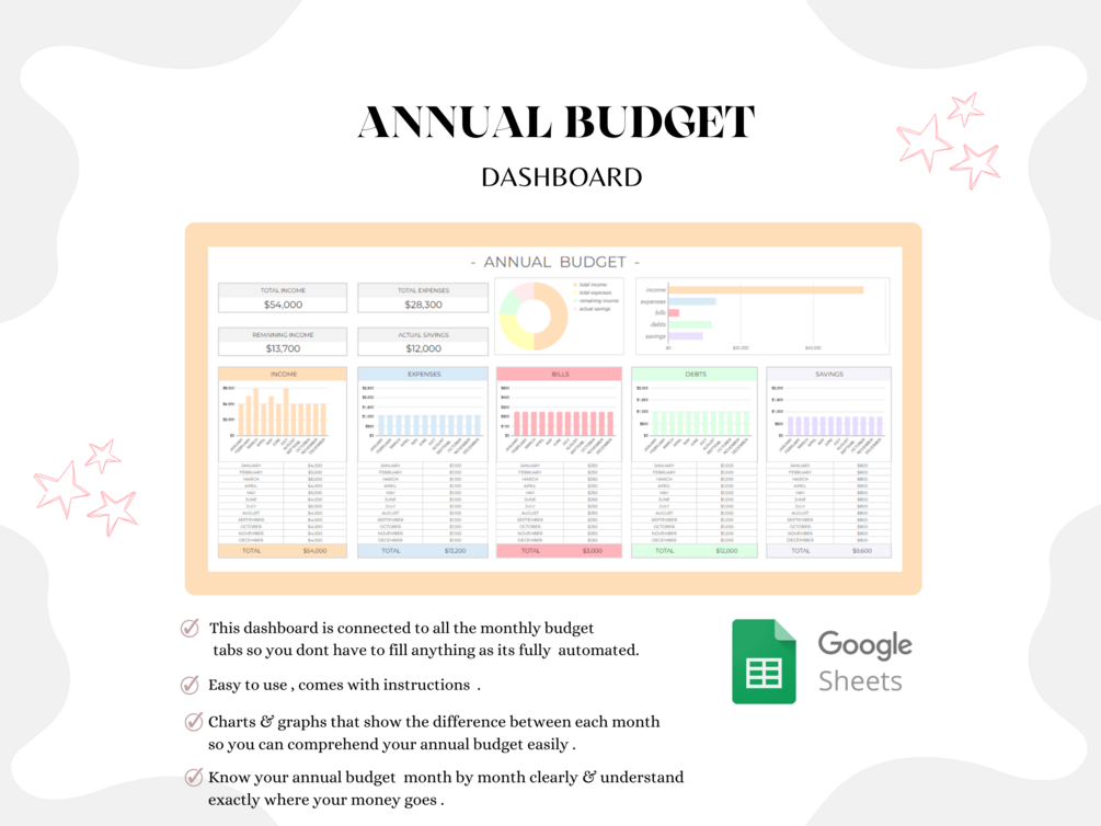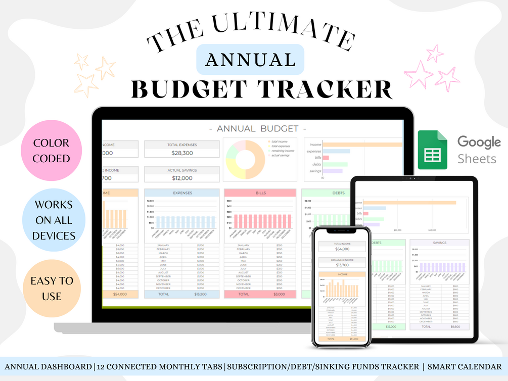 annual budget , financial planner , budgeting template , google sheets , spending tracker , debt tracker , savings tracker , 2025 planner