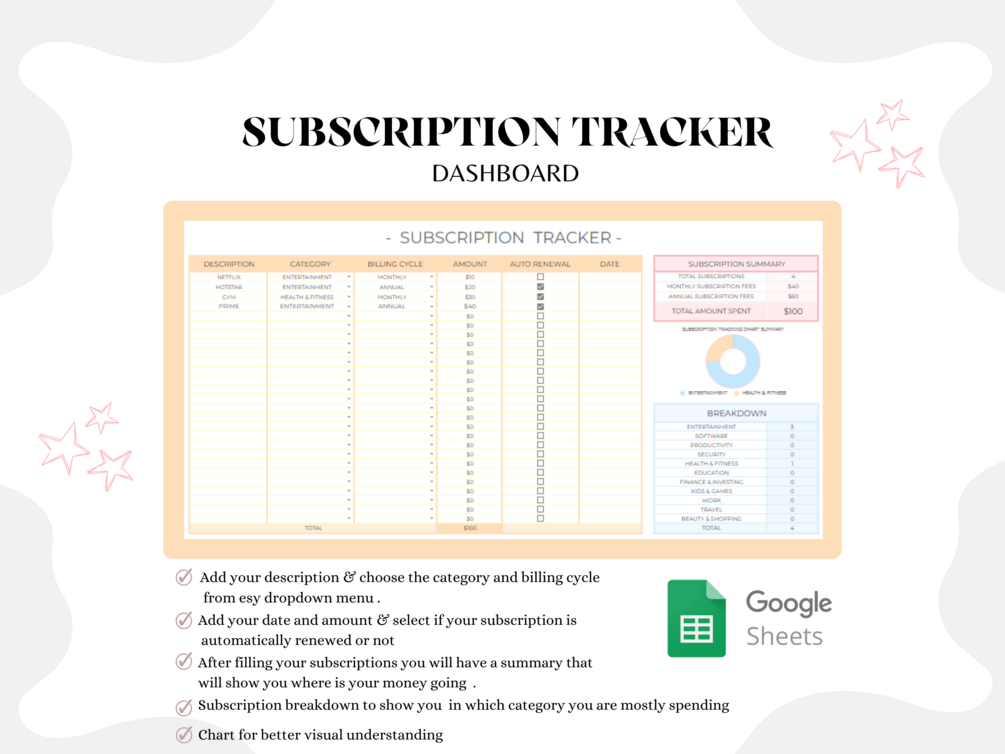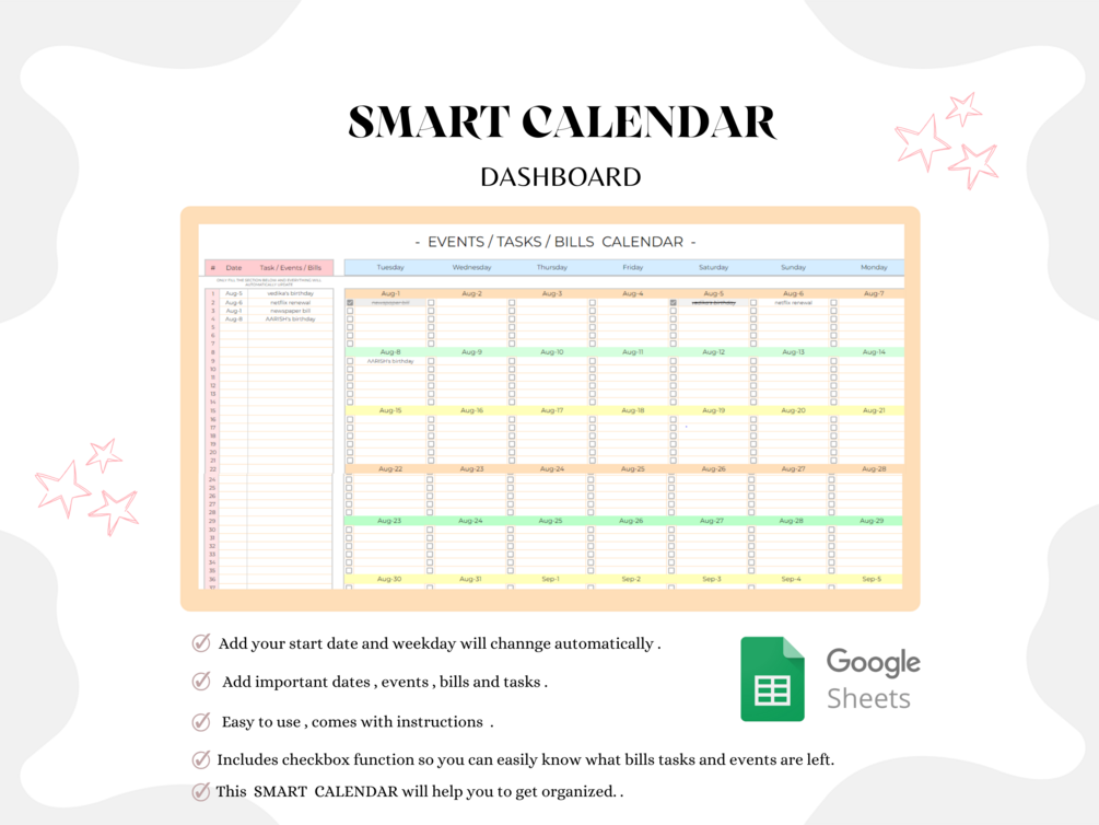 By combining the expense tracker dashboard, subscription tracker, and smart bills/events/task calendar, this spreadsheet offers a comprehensive solution for managing your expenses, subscriptions, and schedule with ease and efficiency.