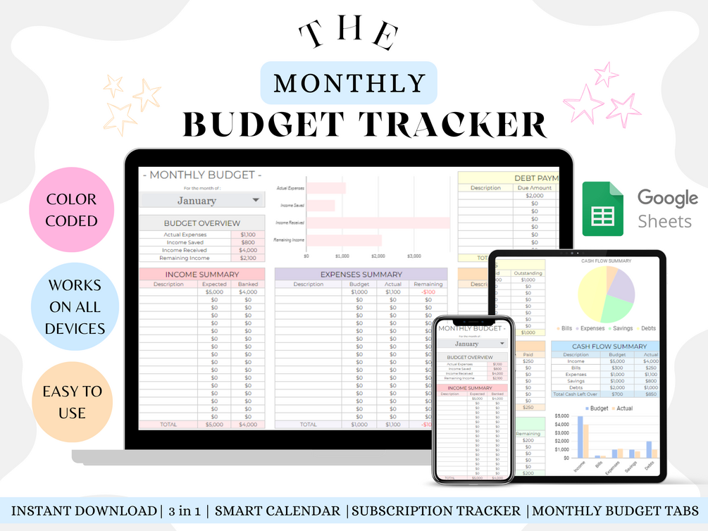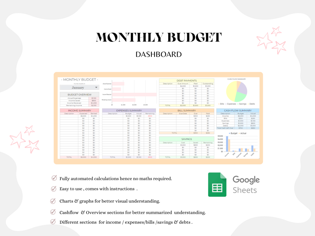 Monthly budget tracker spreadsheet template for google sheets ( beginner friendly)