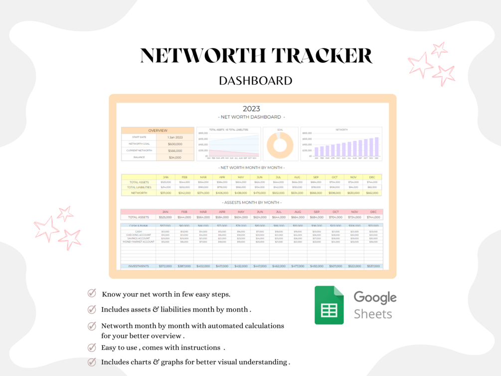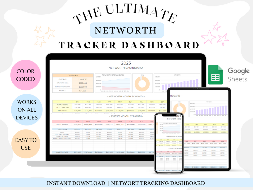 Digital Net Worth Tracking Template for Google Sheets